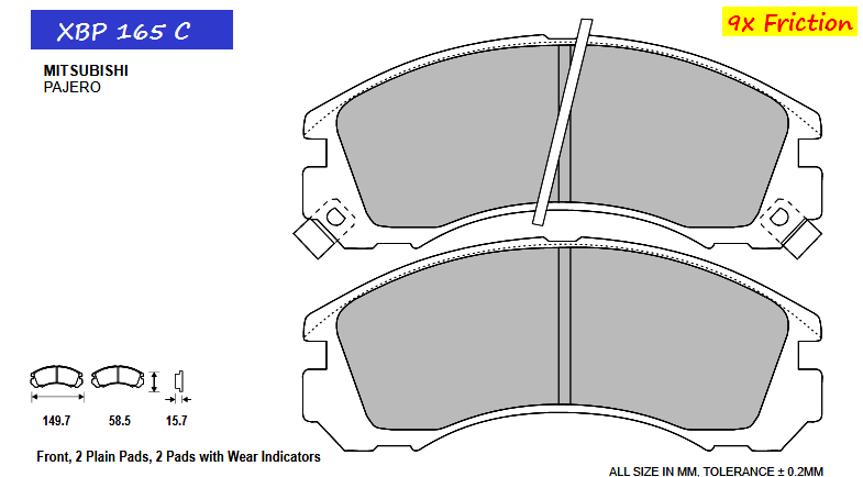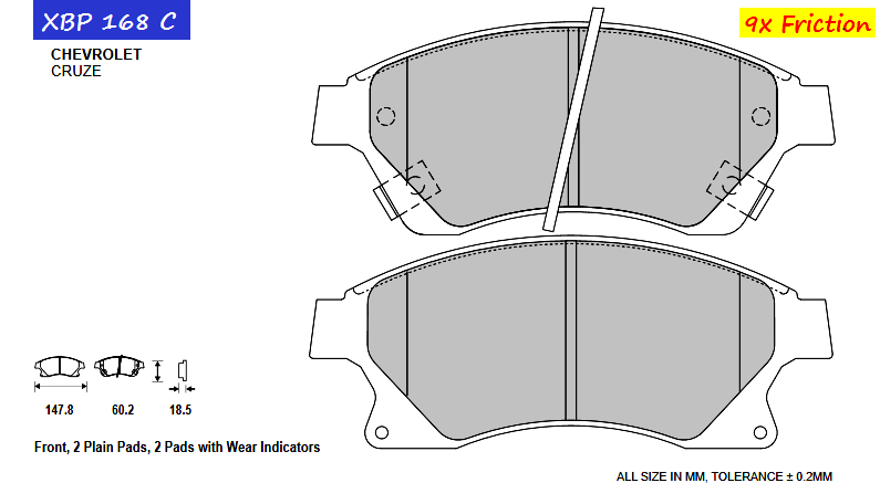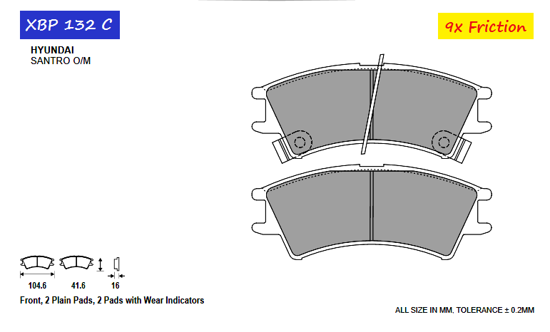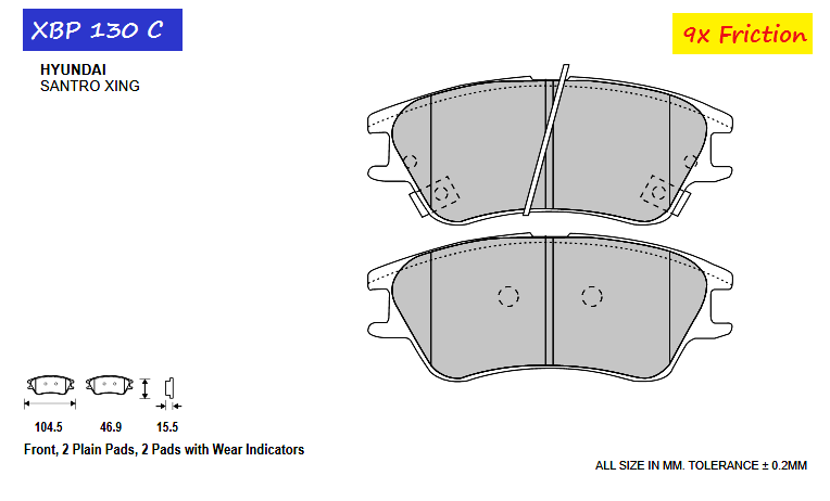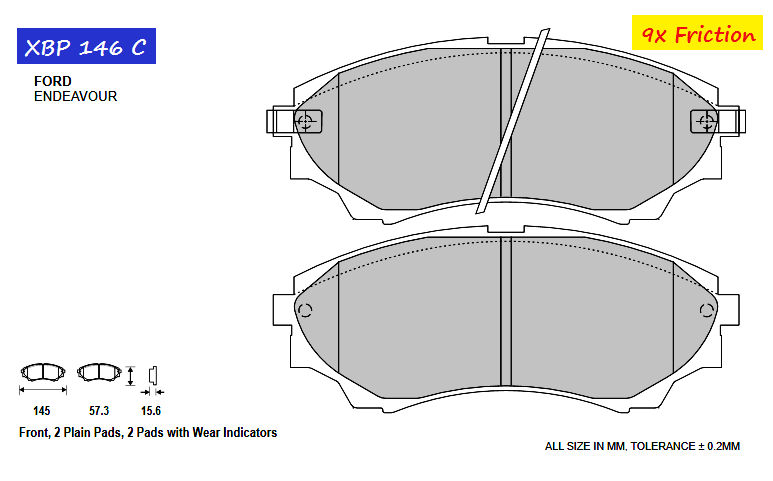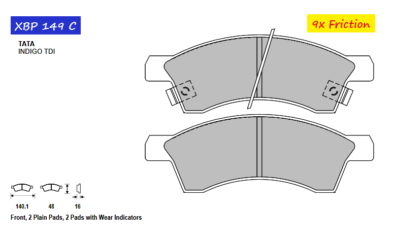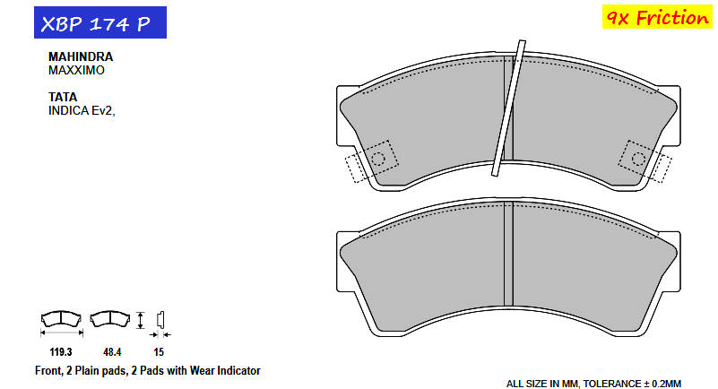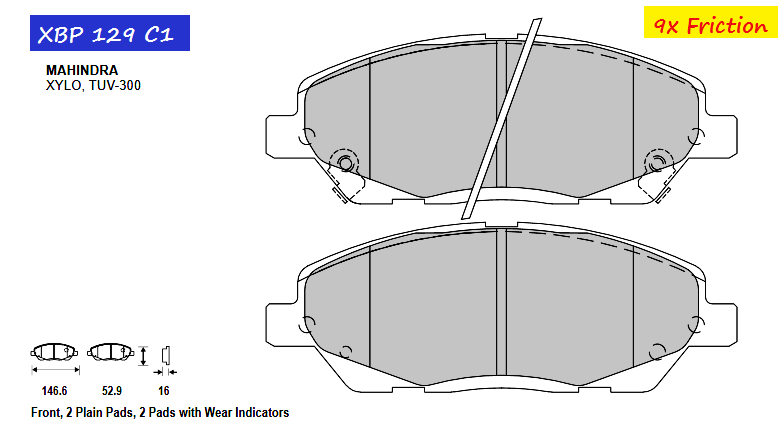 MAHINDRA XYLO, TUV-300 Front, 2 Plain Pads, 2 Pads with Wear Indicators