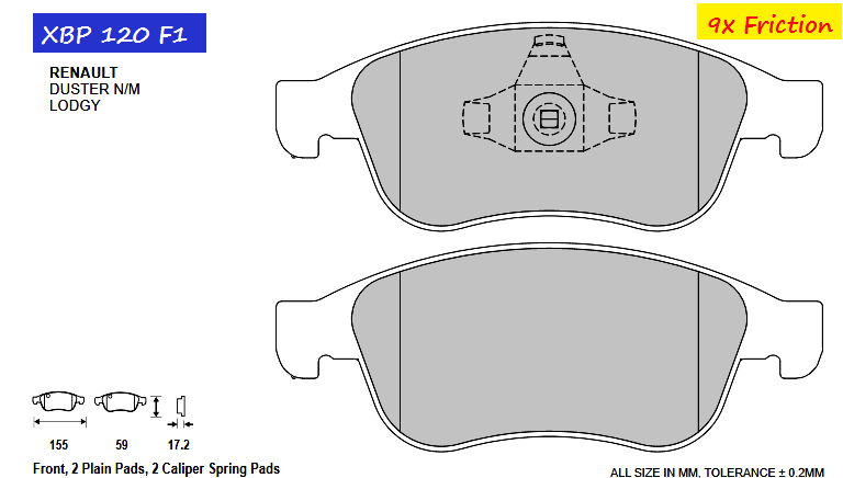 RENAULT DUSTER N/M LODGY Front, 2 Plain Pads, 2 Caliper Spring Pads