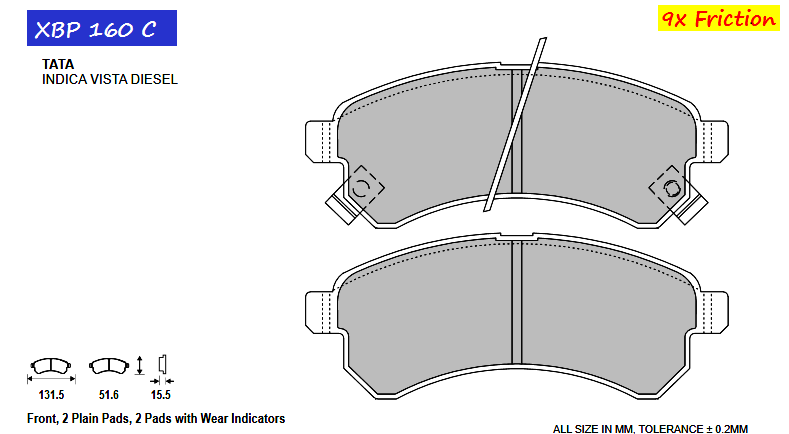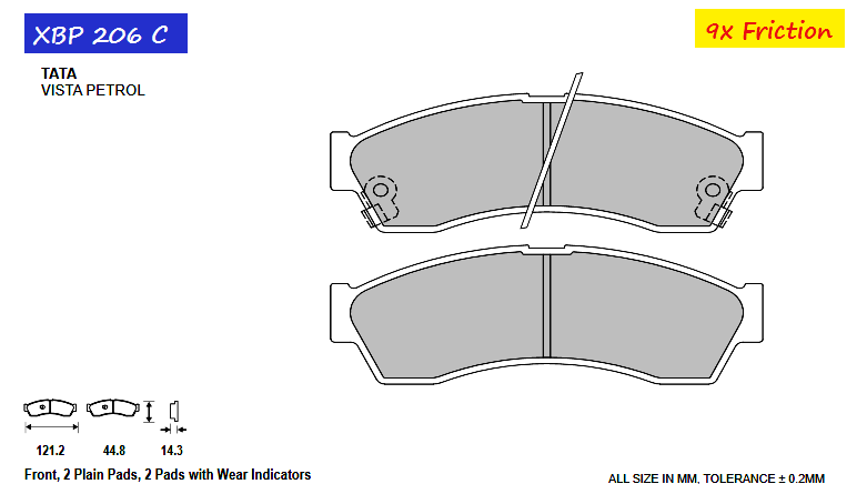 TATA VISTA PETROL Front, 2 Plain Pads, 2 Pads with Wear Indicators