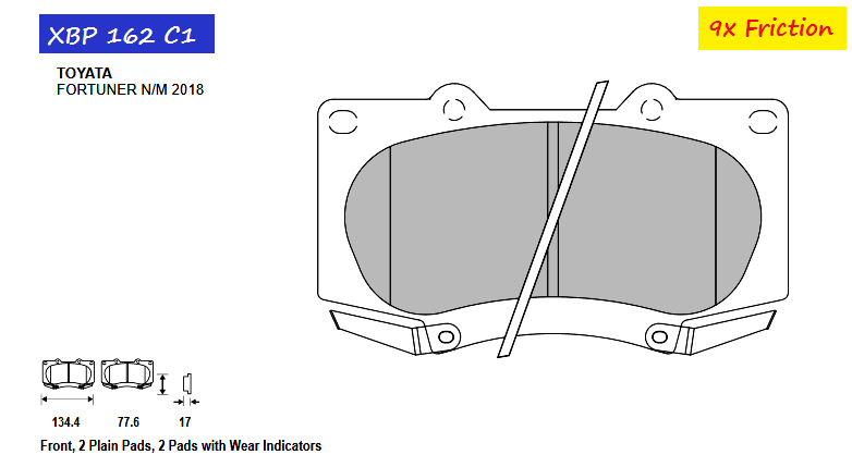 TOTOTA INNOVA Front, 2 Plain Pads, 2 Pads with Wear Indicators