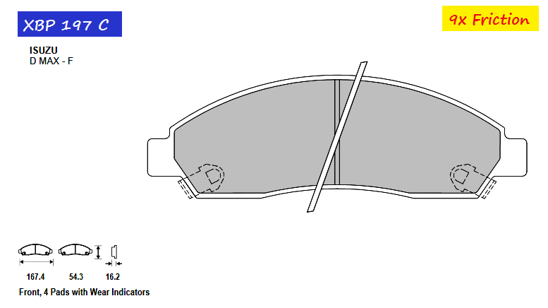 ISUZU D 2 Front, 4 Pads with Wear Indicators