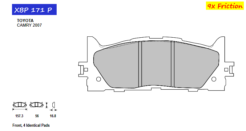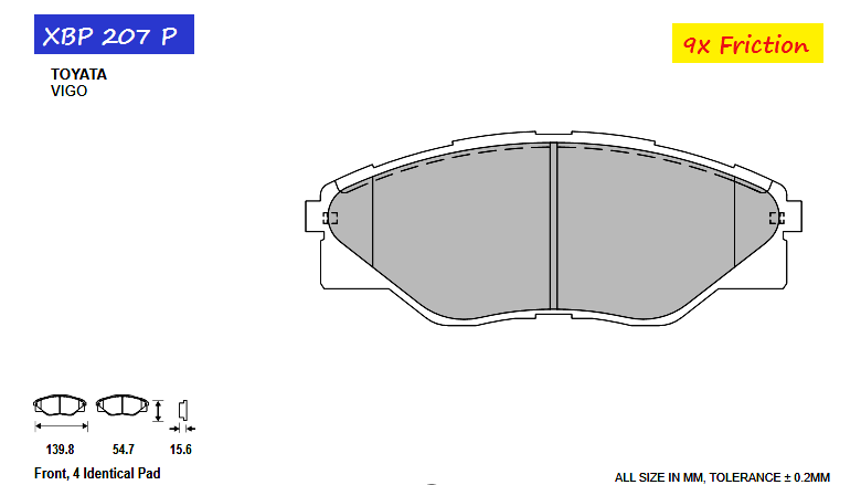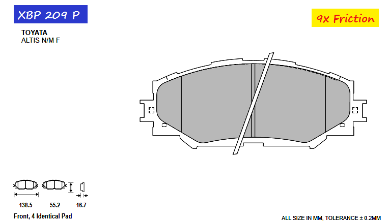 TOYOTA ALTIS N/M Front, 4 Identical Pad