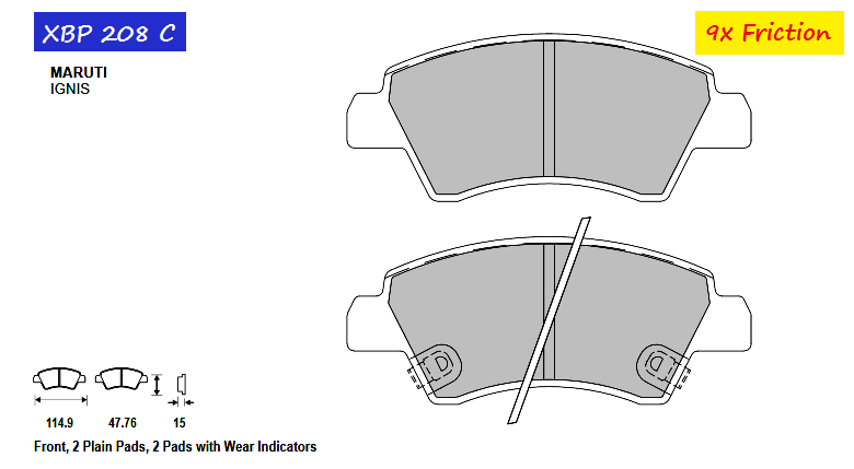 MARUTI IGNIS Front, 2 Plain Pads, 2 Pads with Wear Indicators