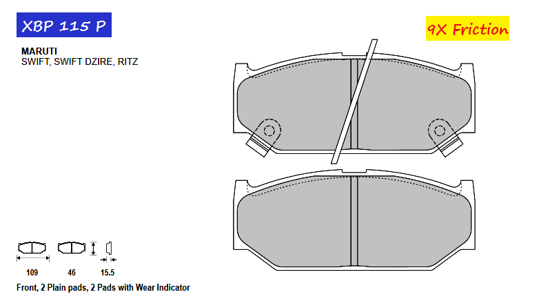 MARUTI SWIFT, SWIFT DZIRE, RITZ Front, 2 Plain pads, 2 Pads with Wear Indicator