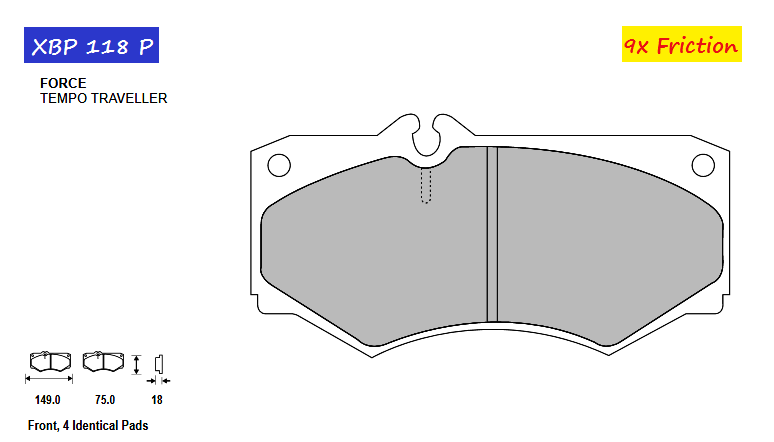 FORCE TEMPO TRAVELLER Front, 4 Identical Pads
