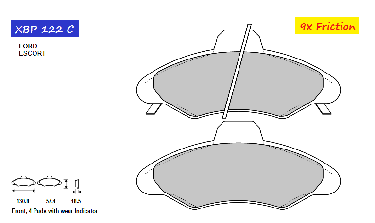 FORD ESCORT Front, 4 Pads with wear Indicator