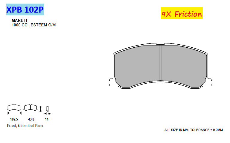 MARUTI 1000 CC , ESTEEM O/M Front, 4 Identical Pads