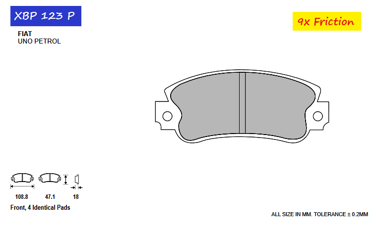 FIAT PALIO O/M , UNO DIESEL Front, 4 Identical Pads