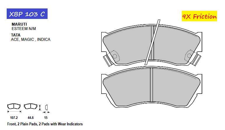 MARUTI ESTEEM N/M TATA ACE, MAGIC , INDICA Front, 2 Plain Pads, 2 Pads with Wear Indicators