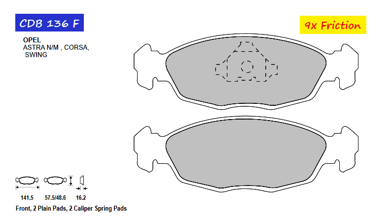 OPEL ASTRA N/M , CORSA, SWING Front, 2 Plain Pads, 2 Caliper Spring Pads
