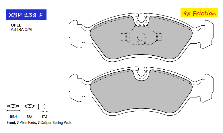 OPEL ASTRA O/M Front, 2 Plain Pads, 2 Caliper Spring Pads