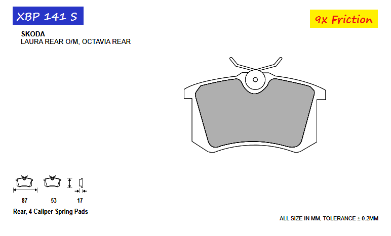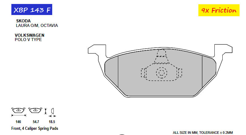 SKODA LAURA N/M SUPERB Front, 2 Plain Pads, 2 Caliper Spring Pads