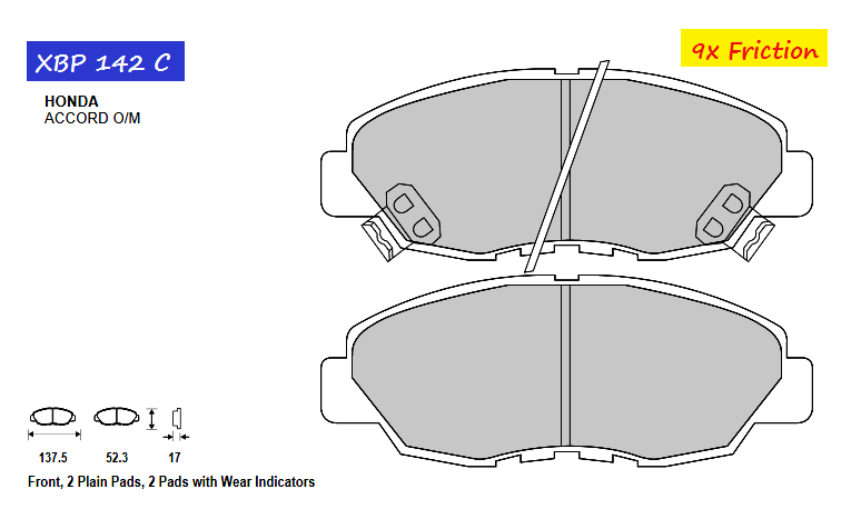 HONDA ACCORD O/M Front, 2 Plain Pads, 2 Pads with Wear Indicators