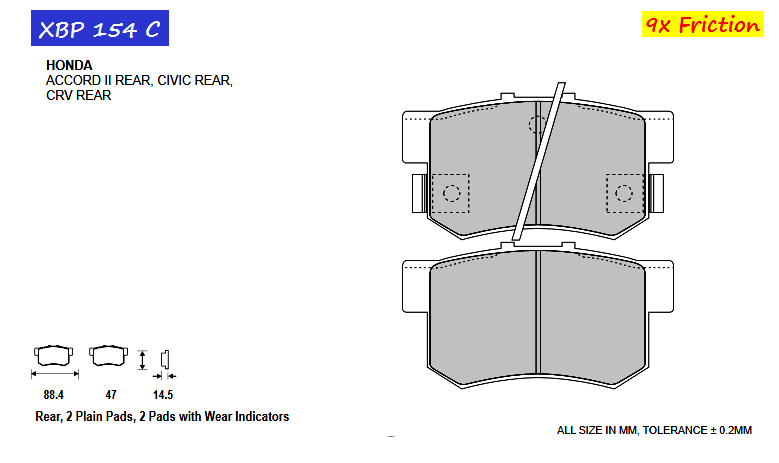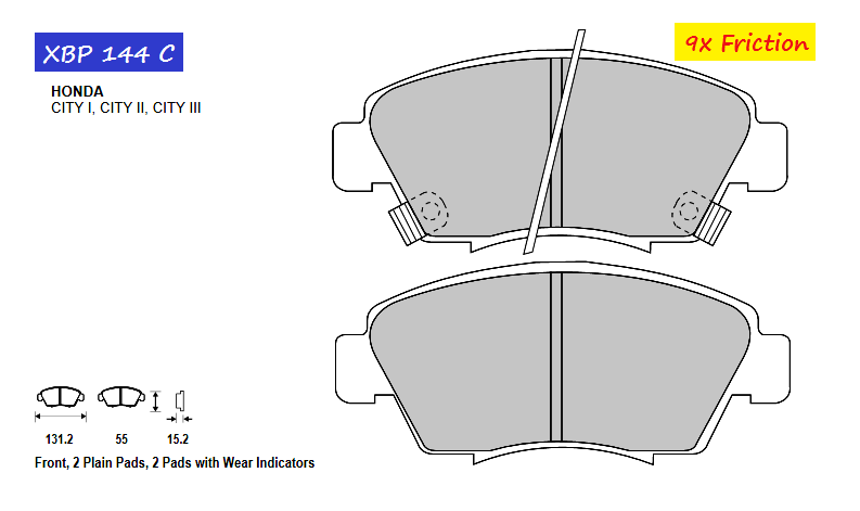 HONDA CITY I, CITY II, CITY III Front, 2 Plain Pads, 2 Pads with Wear Indicators
