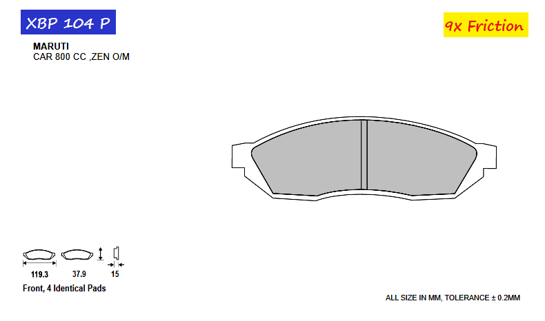 MARUTI CAR 800 CC ,ZEN O/M Front, 4 Identical Pads