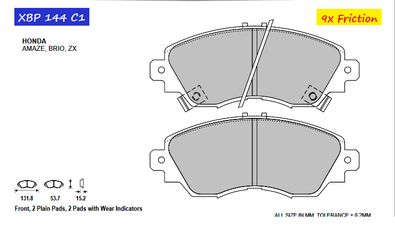 HONDA AMAZE, BRIO Front, 2 Plain Pads, 2 Pads with Wear Indicators