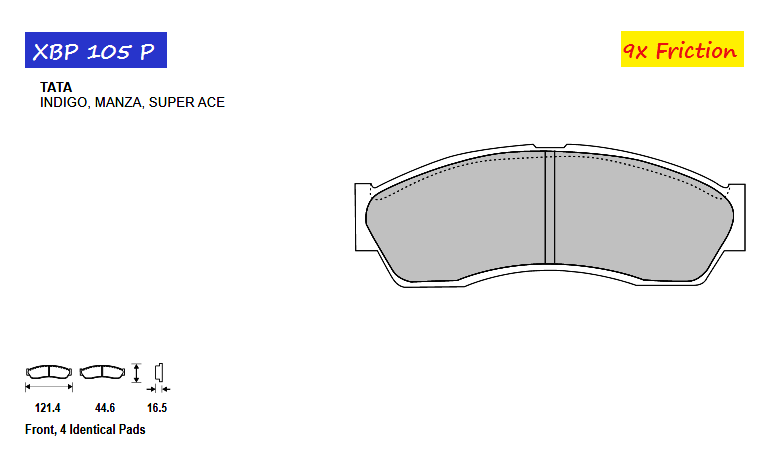 TATA INDIGO, MANZA, SUPER ACE Front, 4 Identical Pads
