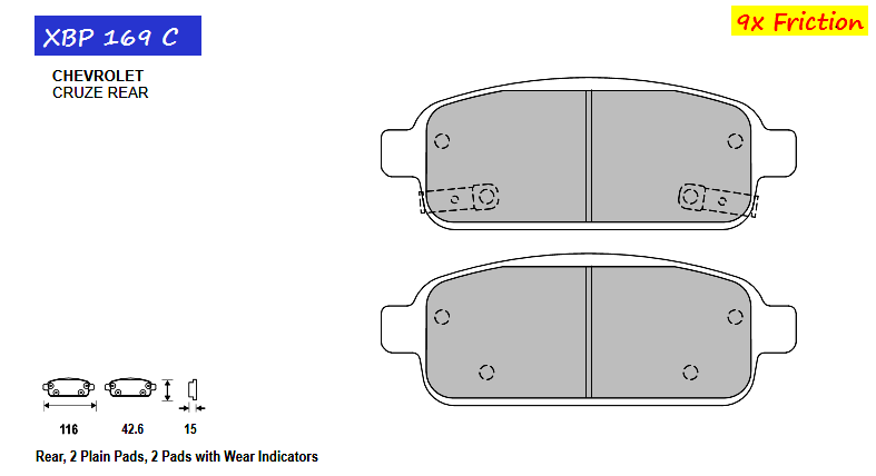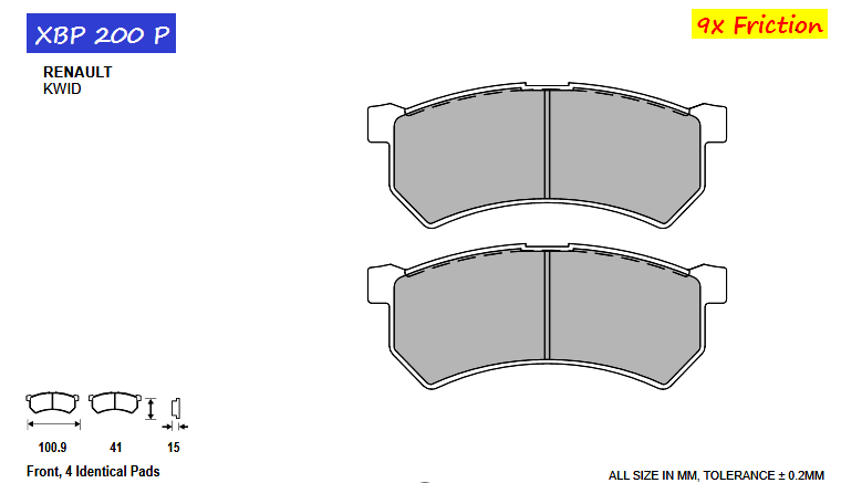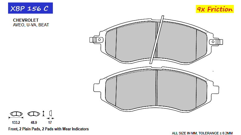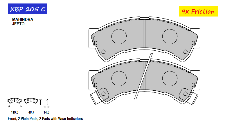 MAHINDRA KUV-100 Front, 2 Plain Pads, 2 Pads with Wear Indicators