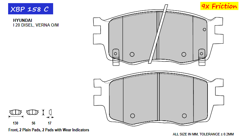 HYUNDAI 110 GRAND, XCENT Front, 2 Plain Pads, 2 Pads with Wear Indicator