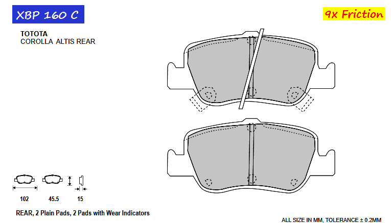 TOYOTA COROLLA REAR Rear, 4 Identical Pads