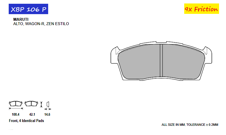 MARUTI ALTO, WAGON-R, ZEN ESTILO Front, 4 Identical Pads