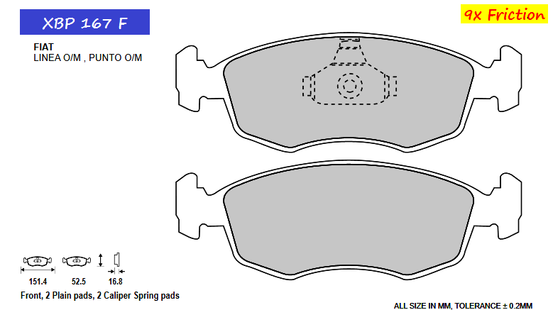FIAT LINEA N/M ,PUNTO N/M Front, 4 Pads with Caliper Spring