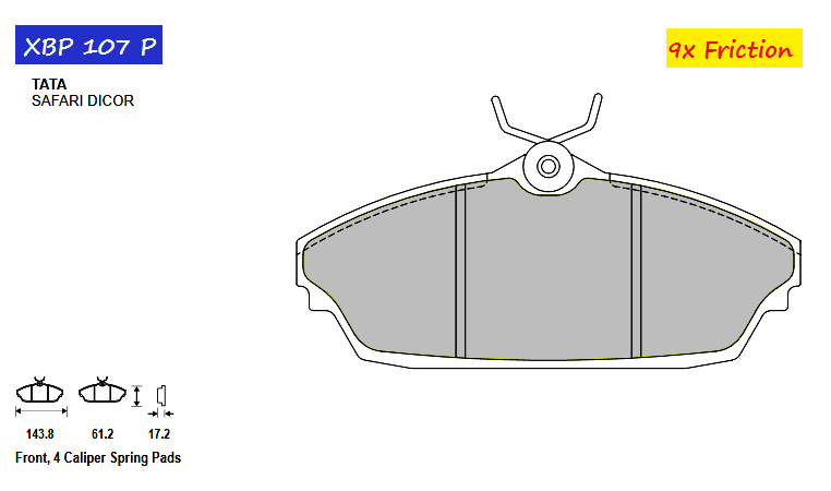 TATA SUMO, SAFARI O/M, 207 MAHINDRA SCORPIO O/M, ARMADA, BOLERO UTILITY, MARSHAL, PIK-UP FORCE TEMPO TRAX, JUDO ~ Front, 4 Caliper soring Pads