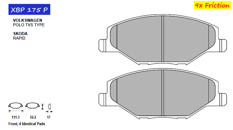 VOLKSWAGEN POLO TVS TYPE SKODA RAPID Front, 4 Identical Pads
