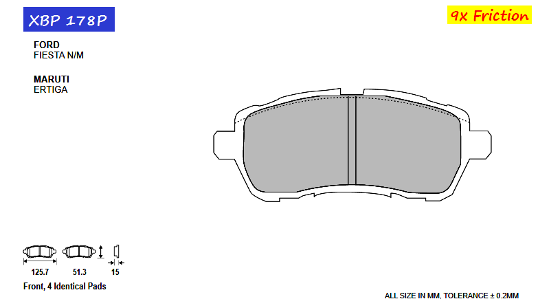 FORD FIESTA N/M MARUTI ERTIGA Front, 4 Identical Pads ( ++ 15