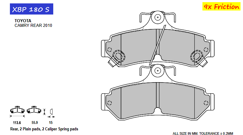 TOYOTA CAMRY REAR 2010 Rear, 2 Plain pads, 2 Caliper Spring pads