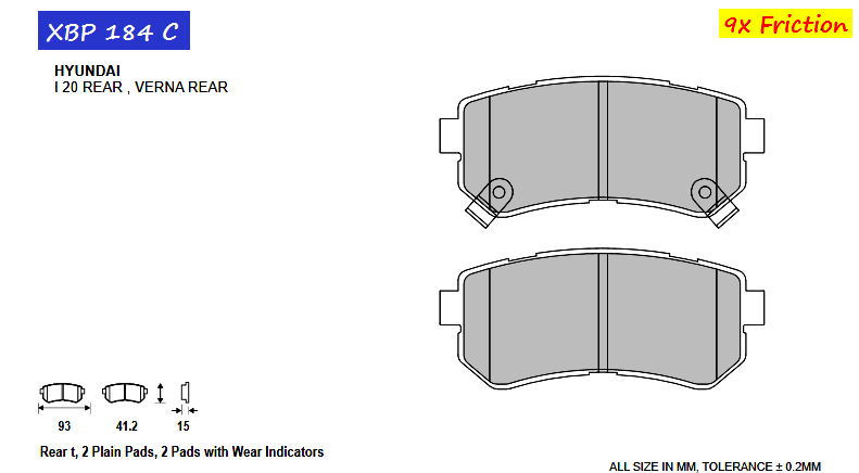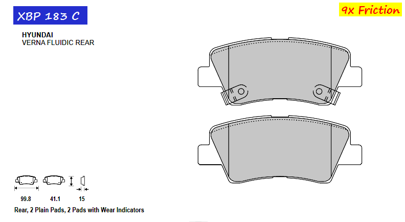 HYUNDAI 120 REAR , VERNA REAR Rear t, 2 Plain Pads, 2 Pads with Wear Indicators