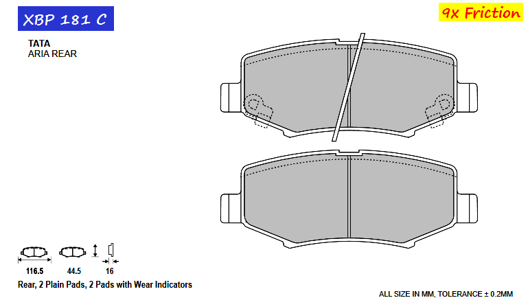 TATA ARIA REAR Rear, 2 Plain Pads, 2 Pads with Wear Indicators