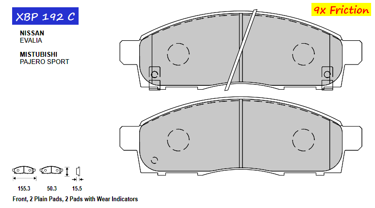 NISSAN EVALIA MISTUBISHI PAJERO SPORT Rear, 2 Plain Pads, 2 Pads with Wear Indicators