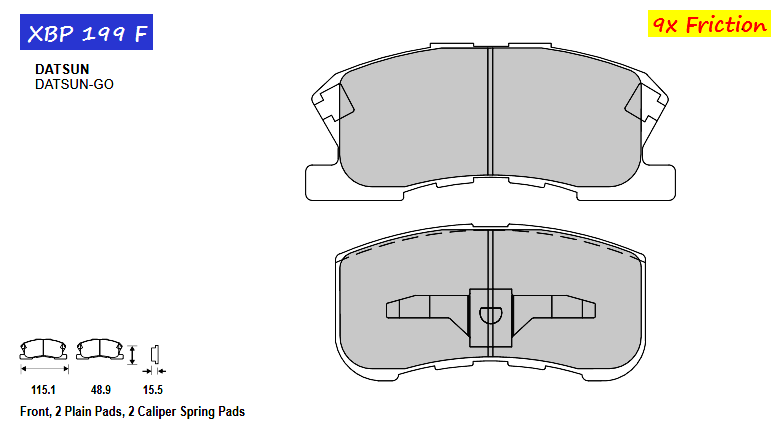 DATSUN DATSUN-GO Front, 2 Plain Pads, 2 Caliper Spring Pads