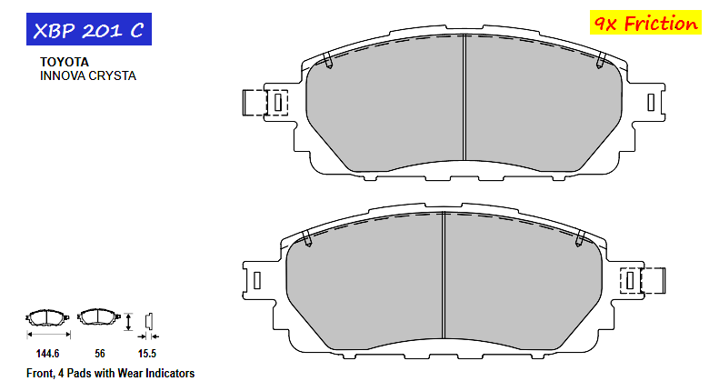 TOYOTA INNOVA CRYSTA Front, 4 Pads with Wear Indicators