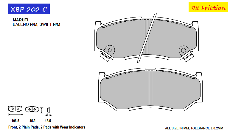MARUTI BALENO N/M, SWIFT N/M Front, 2 Plain Pads, 2 Pads with Wear Indicators