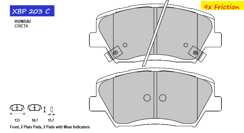 HUNDAI CRETA Front, 2 Plain Pads, 2 Pads with Wear Indicators
